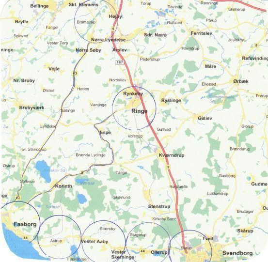 Tirsdag morgen kører vi fra Faaborg via Sallinge Ølsted Allested-Vejle Steinerskolen i Lindved. Odense syd Ringe Kværndrup Stenstrup Hele Svendborg- Tåsinge –Ranzausminde- Ollerup- Vester-skerninge Vesteråby- Åstrup- Korinth